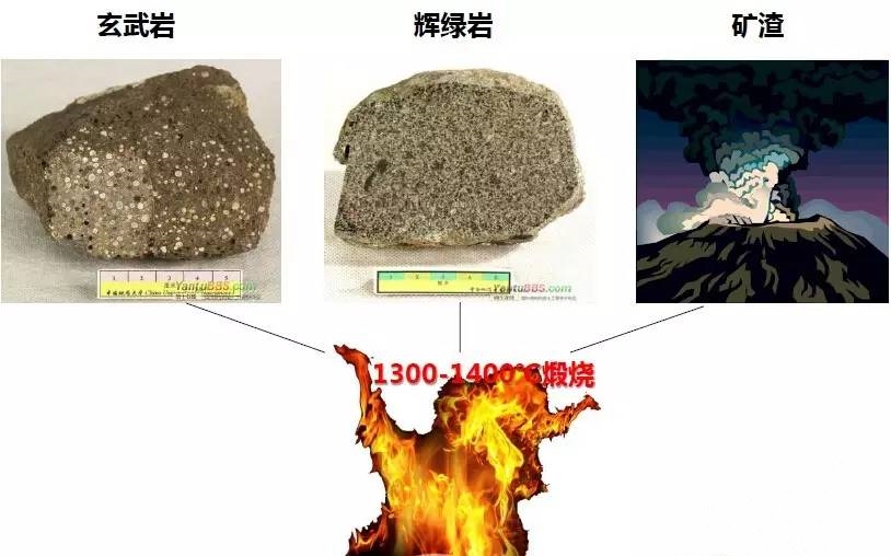 巖棉原材料主要由玄武巖、輝綠巖、礦渣等組成,經過1300-1400℃的高溫煅燒。