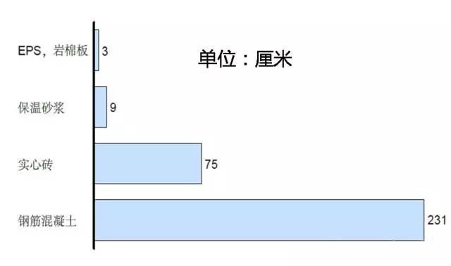 同樣的保溫性能前提下,不同的材料所需的厚度如下: