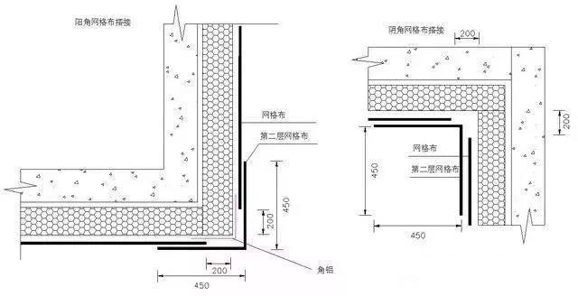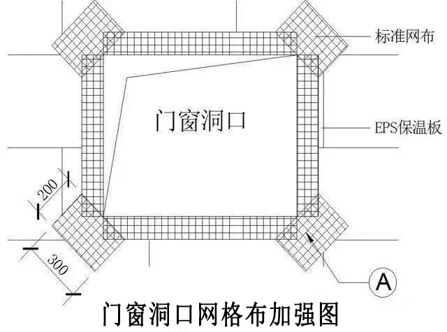 9、必須先上膠再埋網,嚴禁邊鋪網邊上膠。 10、當遇到門窗洞口時,應在洞口四角處沿45度方向補貼一塊標準網格布長30*20cm,以防開裂。而且,此步驟應在大面積鋪設之前完成。門窗處和接口處需要使用丙烯酸密封膠灌注防水。 11、粘結劑滿批后達到墻面平整,完成后若有不平整處,則在間隔6-8小時后進行打磨平整,以成為合格的涂料基層。 12、建筑底層需要再鋪設一層加強型網格布,以保護受撞擊的墻體。