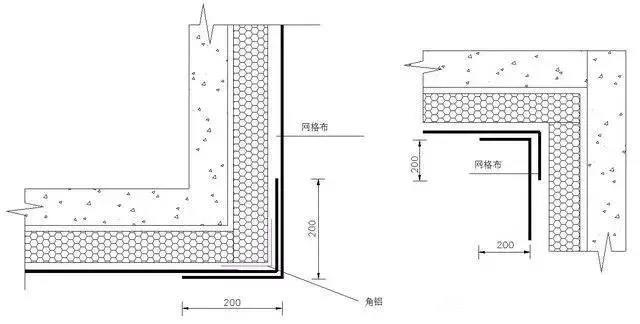 3、在陽角處粘貼保溫板時,寧可使其超出墻面一定距離(2cm左右),等今后保溫板全部貼完后,統一彈線后切割并打磨平整。