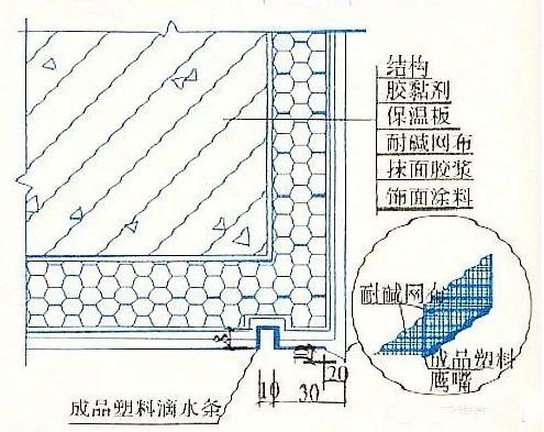 在檐口、勒腳、門窗洞口處及建筑變形縫兩側應預貼窄幅耐堿網布,作系統包邊處理。EPS板、XPS板在非標準尺寸或局部不規則時,應采用電熱絲或其他工具切割,切口必須與板面垂直。整塊墻面的邊角處應用最小尺寸大于300mm的板。