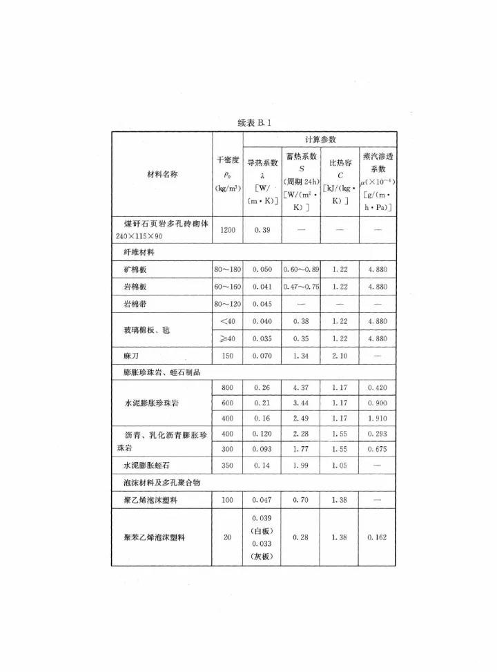 附表 GB 50176-2012中對保溫材料的熱工參數