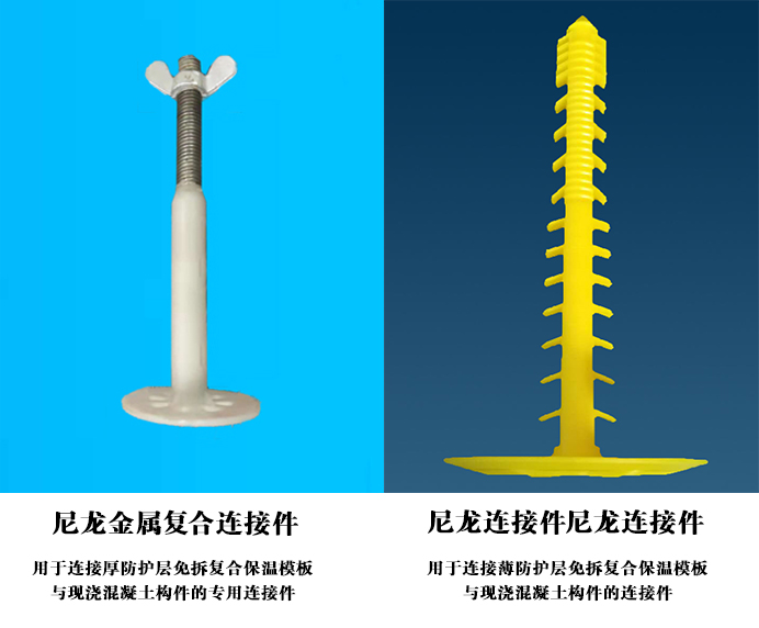 CQ 免拆復合保溫模板系統連接件呈梅花狀布置,每平方米個數不少于6個,進入混凝土基層的有效錨固深度最少為30mm,該連接件在澆筑前起到支撐作用,澆筑后起到拉筋作用,設計簡便,安裝方便。